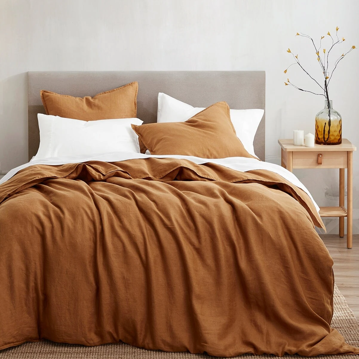 The ideal bedding for all sleepers, all year round. We craft this duvet cover set from fine French flax linen, which boasts natural temperature-regulating qualities that’ll keep you cool and fresh in the summer and warm and cozy in the winter. Lightweight, airy and durable, its luxe textures get softer with each wash, resulting in a piece you’ll reach for season after season. Pair with our Cotton Knit Blanket for added texture, or complete the ensemble with coordinating shams and pillows for a classic, chic casual, or modern rustic bedroom.What’s Included1 Duvet Cover + 2 Pillow ShamsDimensionsQueen – Duvet Cover (92″W x 96″L); Pillow Sham (21″W x 27″L)King – Duvet Cover (110″W x 96″L); Pillow Sham (21″W x 34″L)MaterialsDuvet Cover – Face and Back: 100% linen. Pillow Sham – Face and Back: 100% linen.CareMachine wash cold separately on gentle cycle. Use only non-chlorine bleach. Line or tumble dry low.*Inserts available separately.