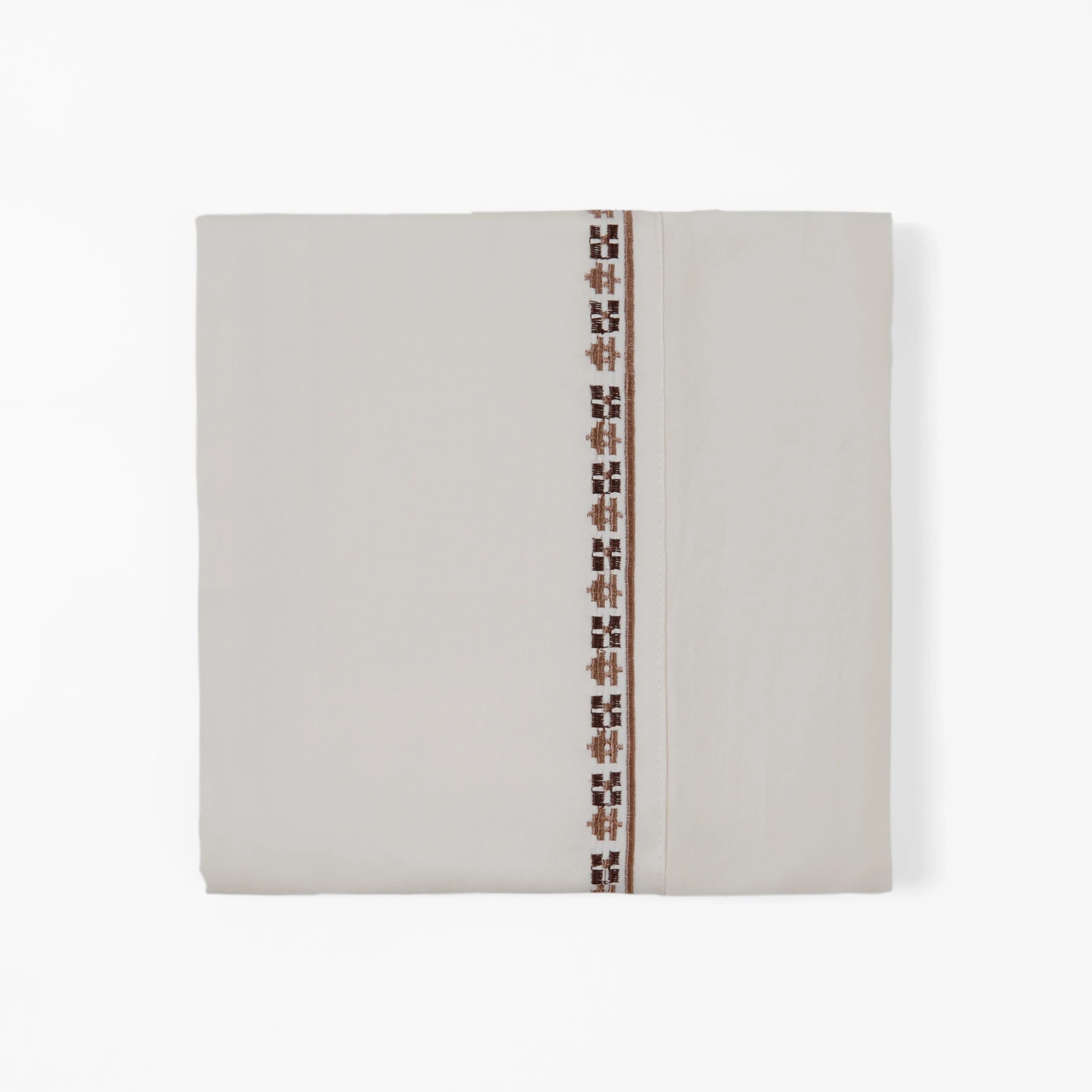 This set of beautiful cream sheets features a sophisticated lodge inspired embroidery for a rustic touch. The 350TC adds to a satin like softness for a refined elegance. Elevate your sheets experience with this gorgeous four piece sheet set that will lend luxury and style to your bedding ensemble. 4-PC Set Includes: (1) Flat Sheet, (1) Fitted Sheet, (2) Pillowcases. Color: Cream, Tan & Burgundy Fair Isle Embroidery. Dimensions: Queen: Flat Sheet: 90″x102″, Fitted Sheet: 60″x80″ +18″, Pillowcase: 20″x30″ +5″. King: Flat Sheet: 102″x108″, Fitted Sheet: 78″x80″ +18″, Pillowcase: 20″x40″ +5″. Care: Machine wash cold, gentle cycle only, do not bleach. Tumble dry on low heat, iron on low heat. Do not dry clean. Material: 100% cotton. Imported.