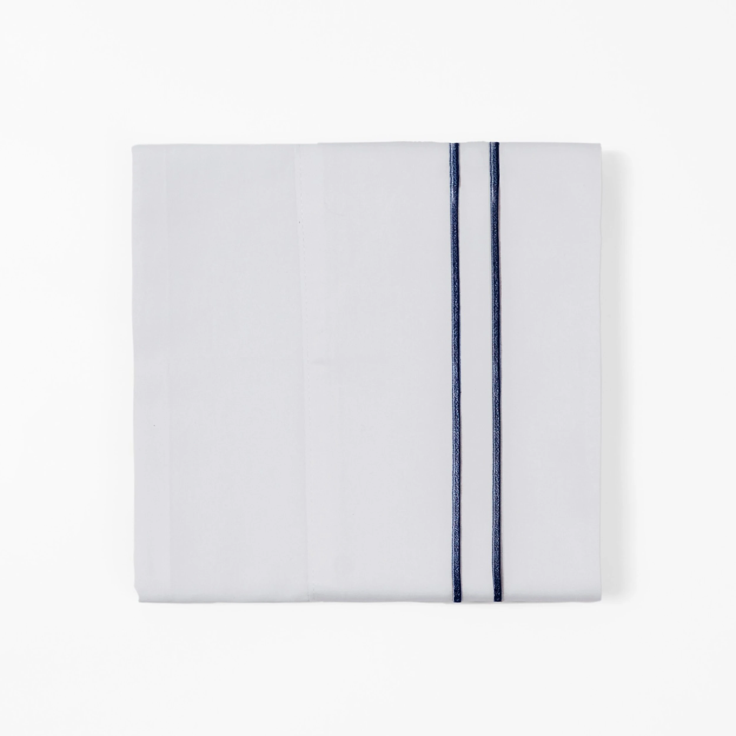 This set of crisp white sheets is embellished with two elegant stripes of raised taupe or gray or navy embroidery, adding sophistication and ensuring versatility. The 350TC adds to a satin like softness for comfort and style. Elevate your sheets experience with this gorgeous four piece sheet set that will lend luxury and refinement your bedding ensemble. Queen and king white sheet sets are available with gray or taupe stripes. 4 PC Set Includes: (1) Flat Sheet, (1) Fitted Sheet, (2) Pillowcases. Color Options: White w/ Gray Stripe, White w/ Taupe Stripe, White w/ Navy Stripe. Measurement: Queen – Flat Sheet: 90″x102″, Fitted Sheet: 60″x80″ +18″, Pillowcase: 20″x40″ +5″. King – Flat Sheet: 102″x108″, Fitted Sheet: 78″x80″ +18″, Pillowcase: 20″x40″ +5″. Care: Machine wash cold, gentle cycle only, do not bleach. Tumble dry on low heat, iron on low heat. Do not dry clean. Material: 100% cotton. Imported.