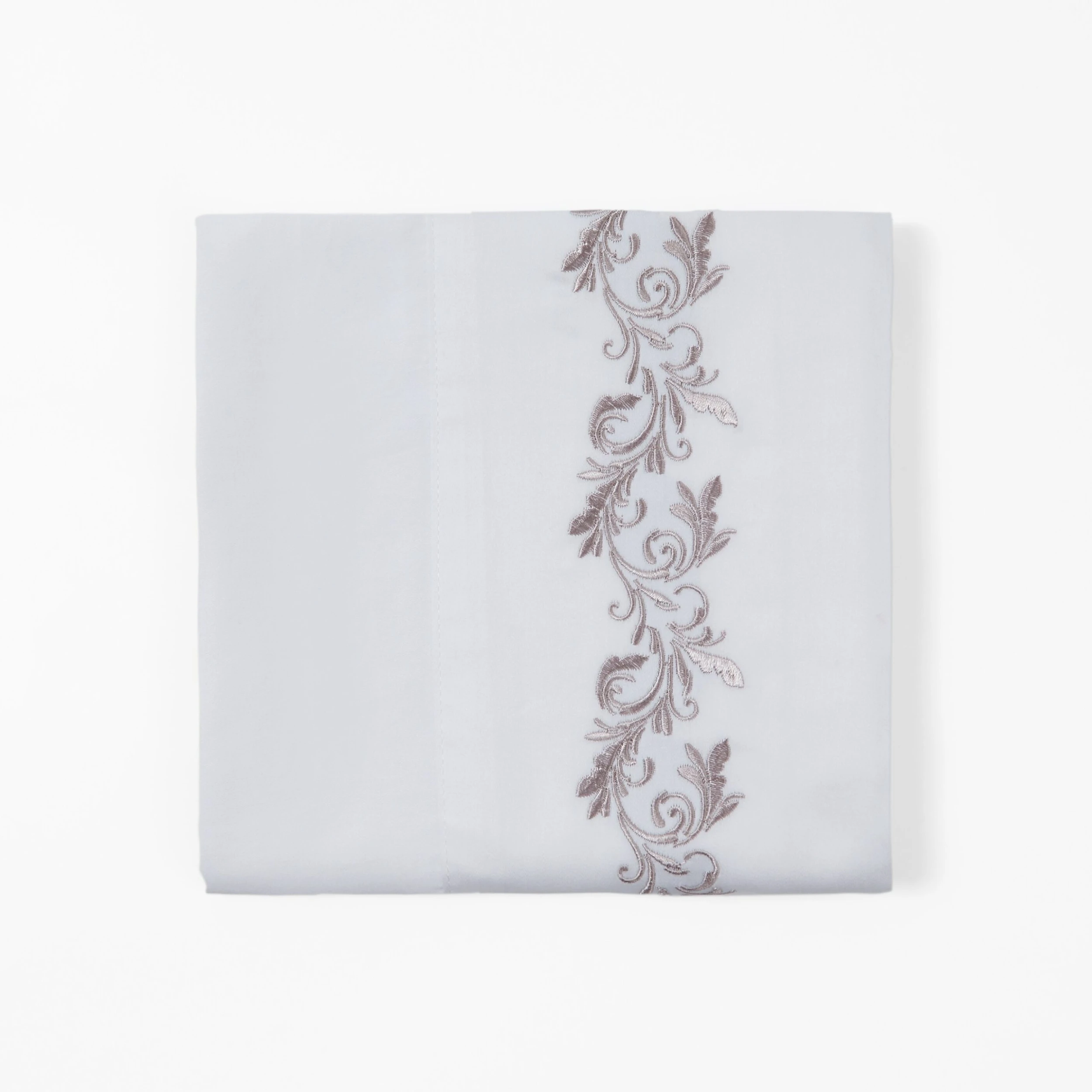 This set of silky sheets features a beautiful, intricate scroll embroidery for added elegance and sophistication for your bedding. The 350TC adds to a satin like softness for comfort and style. Elevate your sheets experience with this gorgeous four piece sheet set that will lend luxury and refinement to your bedding ensemble. Queen & king sheet sets are available in a crisp white w/ gray embroidery or silky gray w/ gray embroidery. 4-PC Set Includes: (1) Flat Sheet, (1) Fitted Sheet, (2) Pillowcases. Color Options: White w/ Gray Scroll. Measurement: Queen – Flat Sheet: 90″x102″, Fitted Sheet: 60″x80″ +18″, Pillowcase: 20″x40″ +5″. King – Flat Sheet: 102″x108″, Fitted Sheet: 78″x80″ +18″, Pillowcase: 20″x40″ +5″. Care: Machine wash cold, gentle cycle only, do not bleach. Tumble dry on low heat, iron on low heat. Do not dry clean. Material: 100% cotton. Imported.