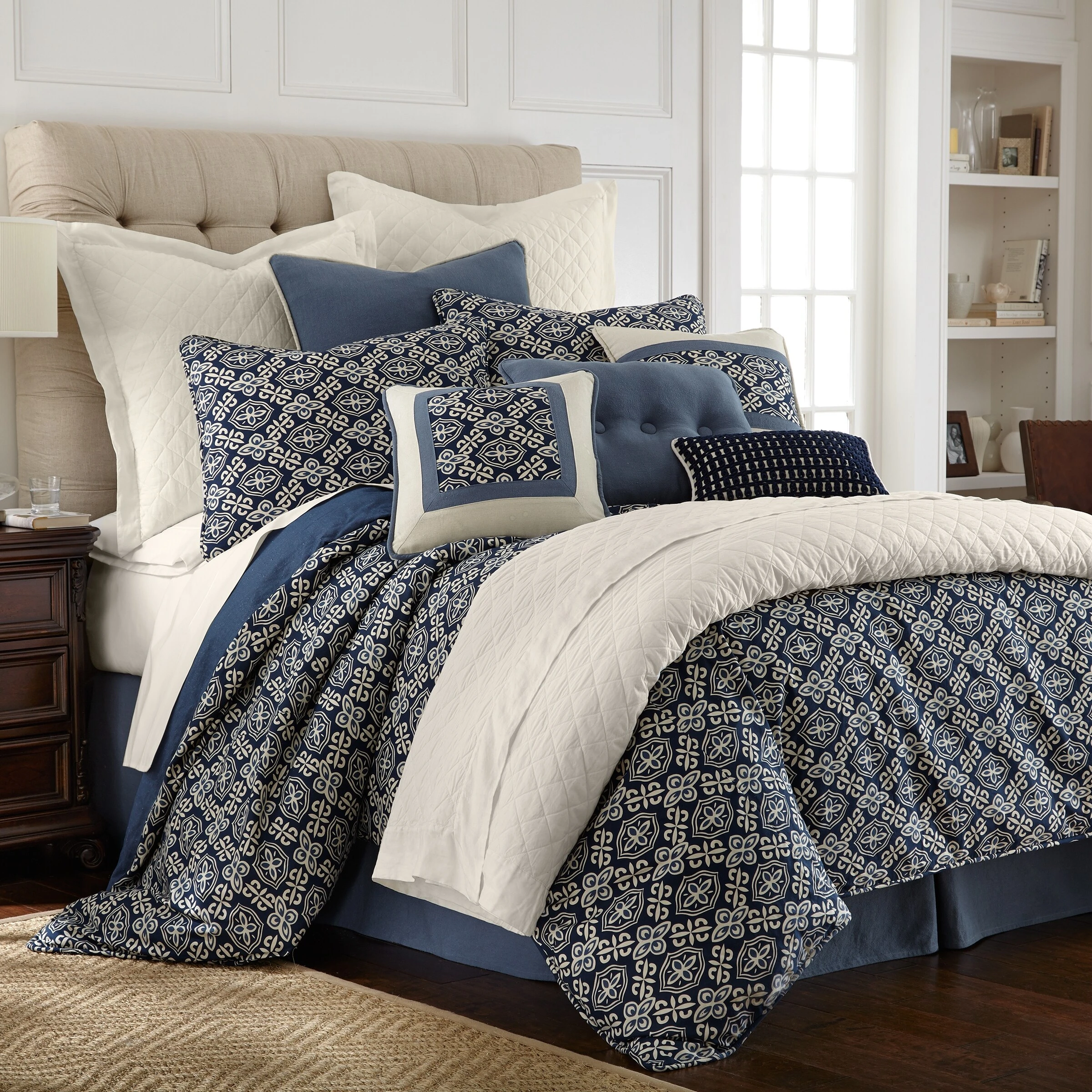 Bold Alhambra in rich shades of indigo and blue mix with crisp solid linens to create the enchanting, HiEnd Accents, Monterrey collection. When mixed with soft quilted linen accessories, this collection comes to life. With a wide variety of coordina ting decorative pillows and accessories, the Monterrey collection can offer an entire room’s worth of style. Window treatments and soft linen quilts are available separately. The Landmark Home Collection from HiEnd Accents provides thoughtfully designed