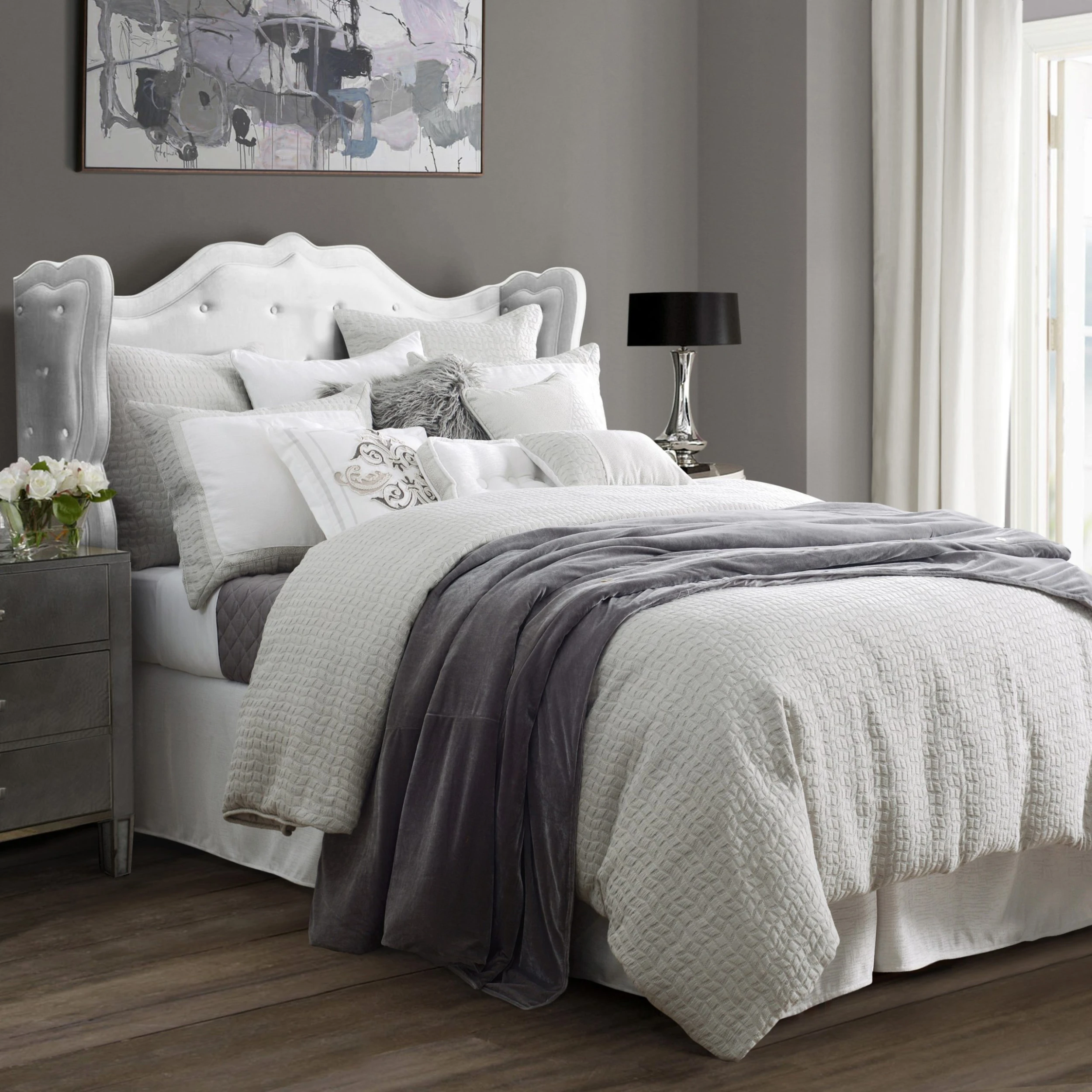 Generate serenity and comfort in the bedroom with this sumptuous four-piece comforter set. This set, which includes a coordinating bedskirt and pillow shams, features restful colors in a pattern that enhances your contemporary decor.