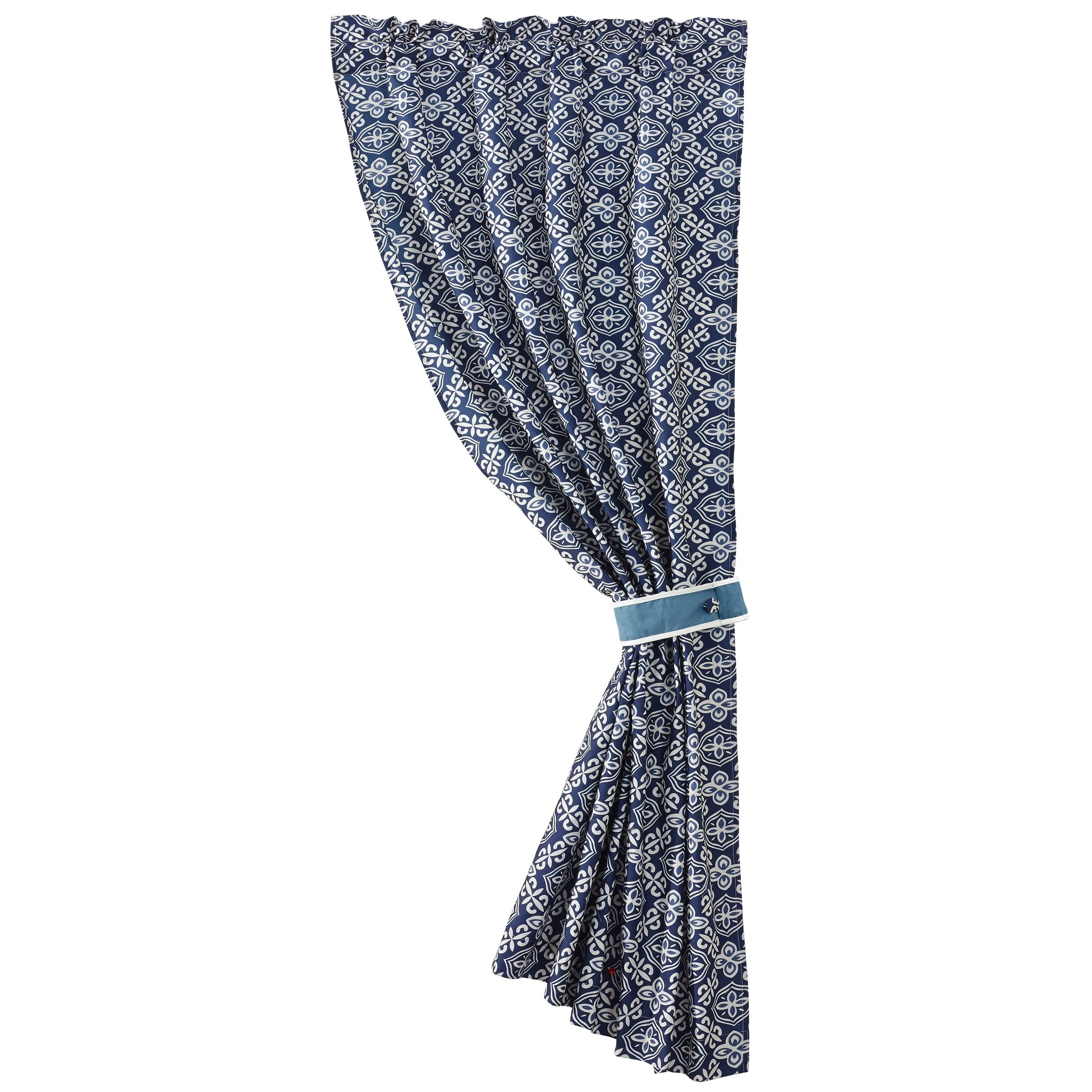 Bold Alhambra in rich shades of indigo and blue mix with crisp solid linens to create the enchanting Monterrey collection. When mixed with soft quilted linen accessories, this collection comes to life. Inspired by artisan tiles from its namesake, the Monterrey curtain features deep blue and white pattern. This single panel, rod-pocket curtain includes a coordinating tie-back for a finished look. Color: Indigo, Blue, White. Measurement: 48″ x 84″, Rod Pocket: Shirr on 1″ rod. Care: Dry clean recommended. Material: 100% polyester. Imported.
