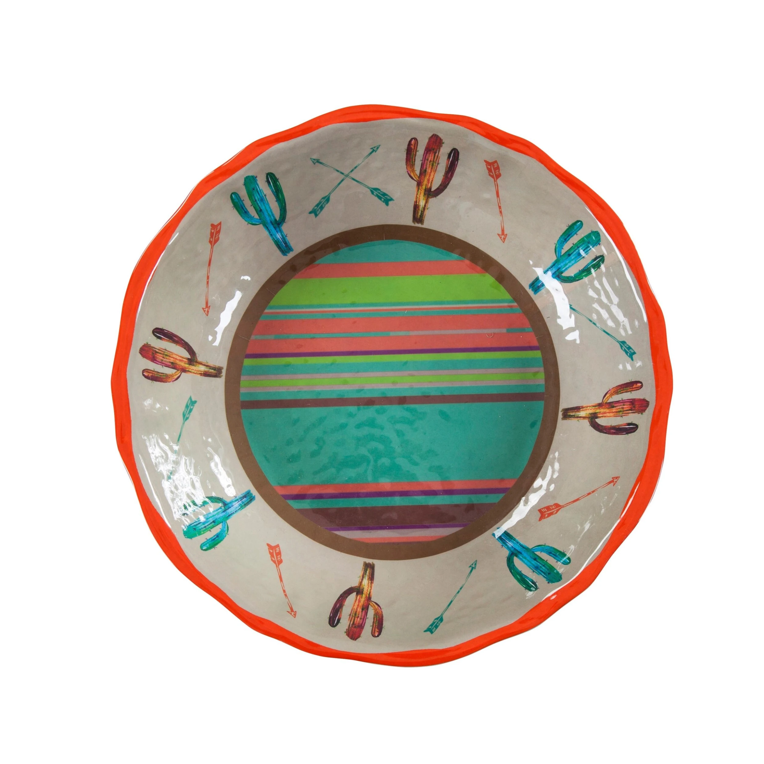 This Cactus Design Melamine Serving Bowl will add a whimsical touch to your table top. Built to last melamine is perfect for outdoor barbecues, family gatherings and durable enough for daily use. Single serving bowl. Imported. Includes: (1) Serving Bowl Measurement: 13.6″ diameter Care: Dishwasher safe. Not recommended for microwave use. Material: Made of melamine