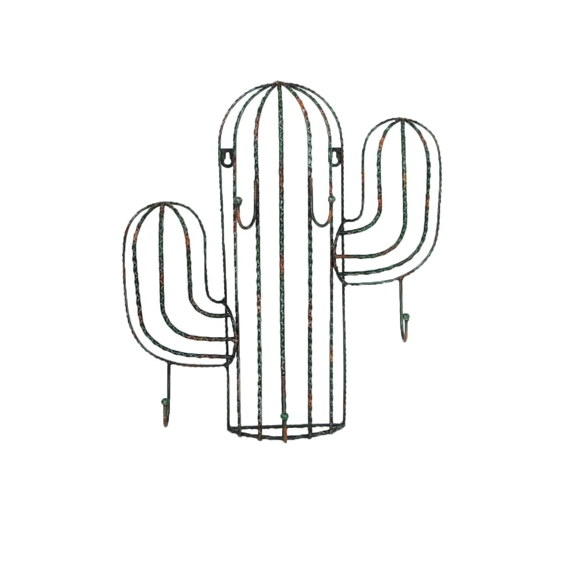 This Cactus Wall Hanging with Hooks is both fun and practical. Perfect for use in multiple rooms of any home. This piece can hold keys, towels, leashes, scarves, necklaces, the possibilies are endless. Measures: 15.7″x14.3″x17.7″. Made from durable steel. Wipe clean. Imported.