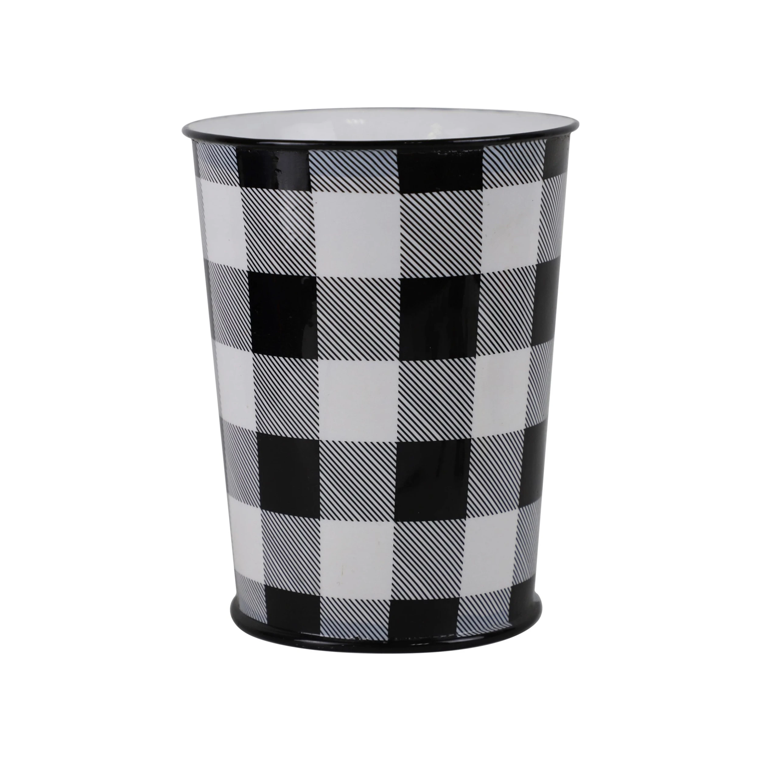 Add a punchy patterned pop with this bold Camille black and white check waste paper basket made of resin. The large gingham pattern will add that sort of classic modern blend you have been looking for. The strong contrasting pattern will add depth and while remaining playful.What’s Included1 WastebasketDimensions7.5″ x7.5″ x9.5″MaterialResinCareWipe clean.