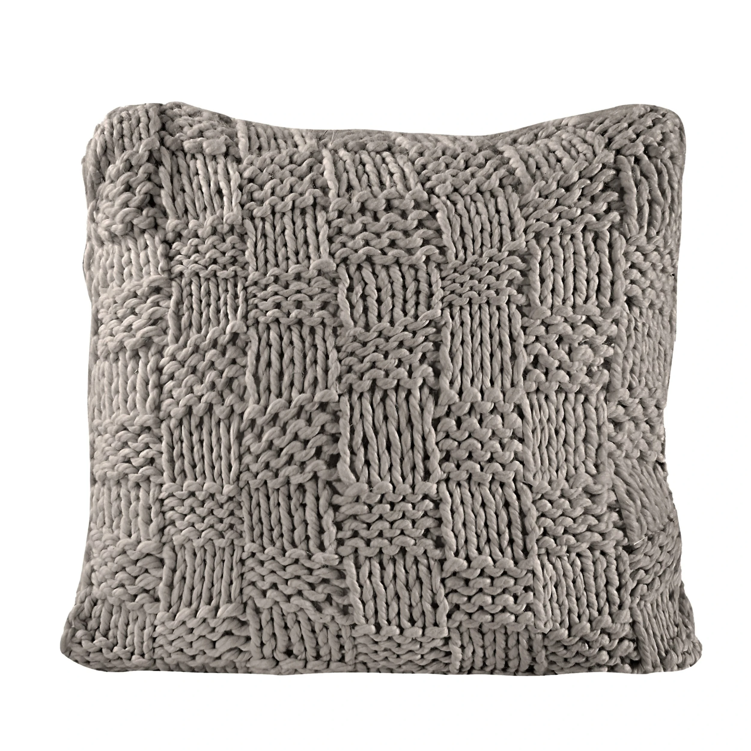 Add a hand-knitted, chess-knit euro to your bedroom for a fun pop of texture and luxurious feel. The knit can be used both in modern, contemporary homes with its chic, bold check pattern, or in a rustic lodge setting with its classic tone and rustic, shabby look. The neutral colors palette makes them a versatile, updated addition to your bedding.