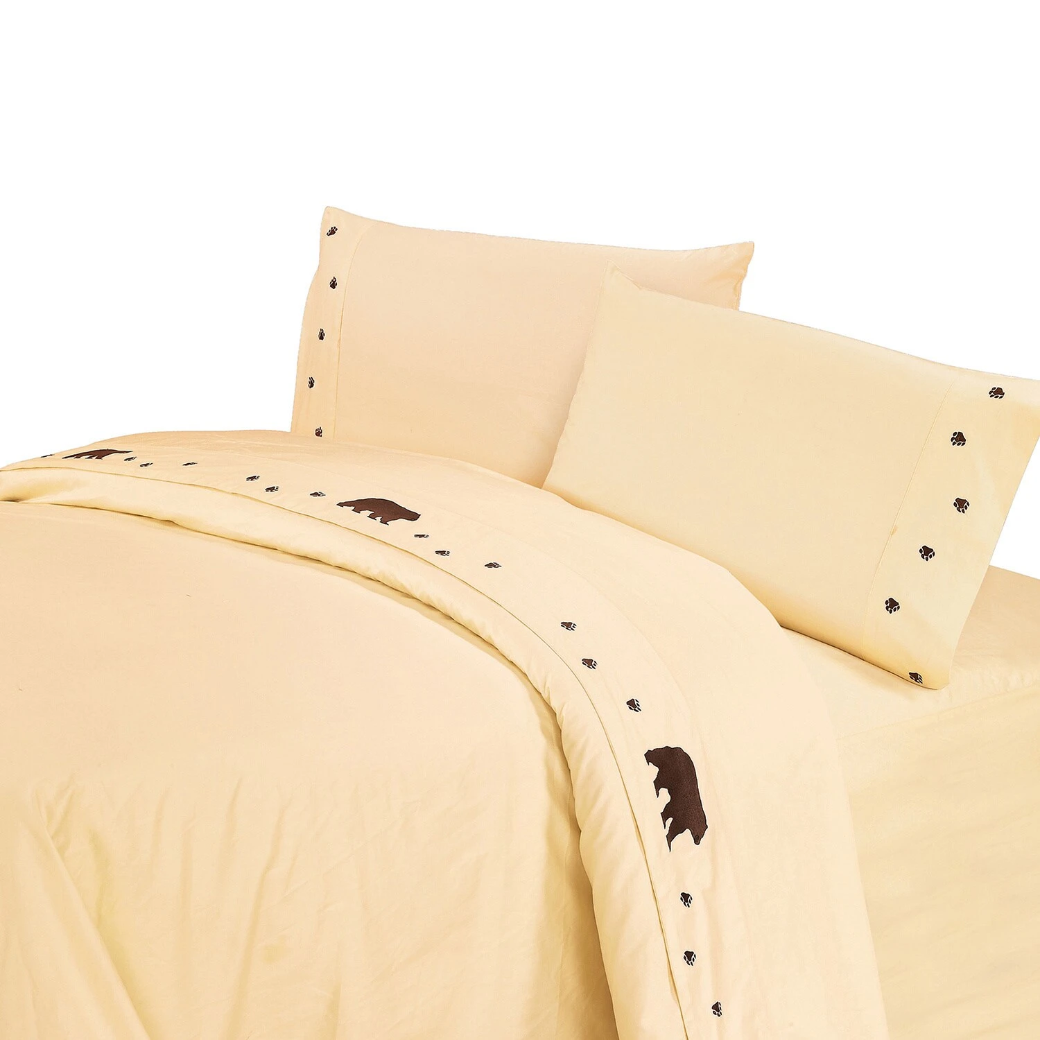 An adorable brown bear pattern highlights a cream background in these comfortable 350 thread count sheets, crafted of 100 percent cotton. These stylish sheets are conveniently machine washable.