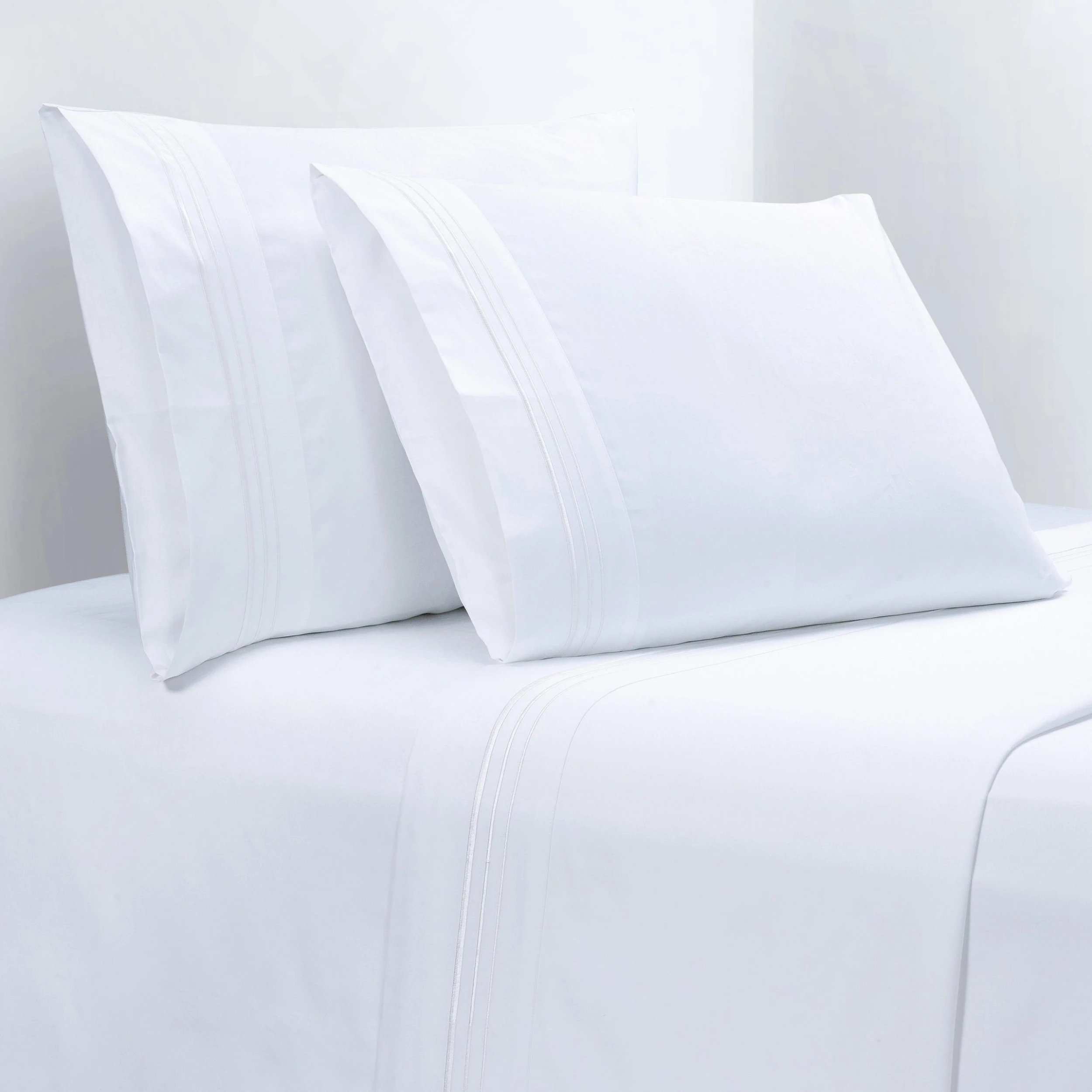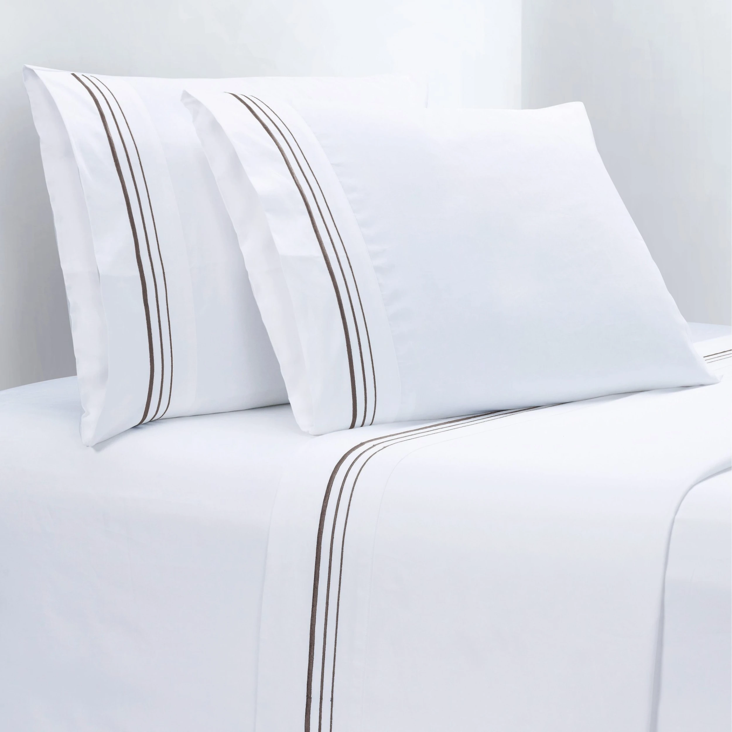 Recall the luxurious look and feel of grand hotel bedding with our Embroidered Border Sheet Set. The pure white 350TC sateen sheeting provides an elegant drape, while the crisp embroidered line accents add texture and a refined finish. Coordinate with shams, duvet covers, and bed skirts in our Embroidered Border Collection for a timeless yet modern bedroom look.