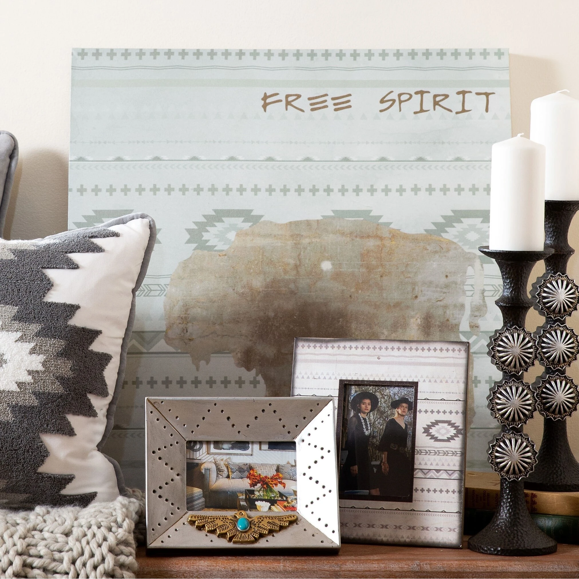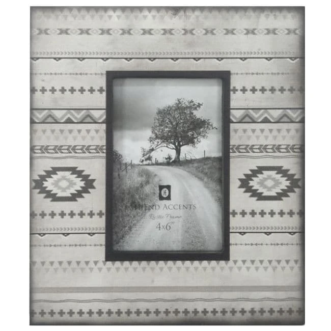 The Free Spirit frame updates your home with a southwestern design. The Aztec inspired pattern will perfectly frame your picture while bringing in a new element of style. For photographs measuring 4″ x 6″. Can be utilized with either vertical or horizontal photographs. Wooden. Back has swing tabs for easy installation, and a thick layer of glass protects your image. Wipe clean. Imported.