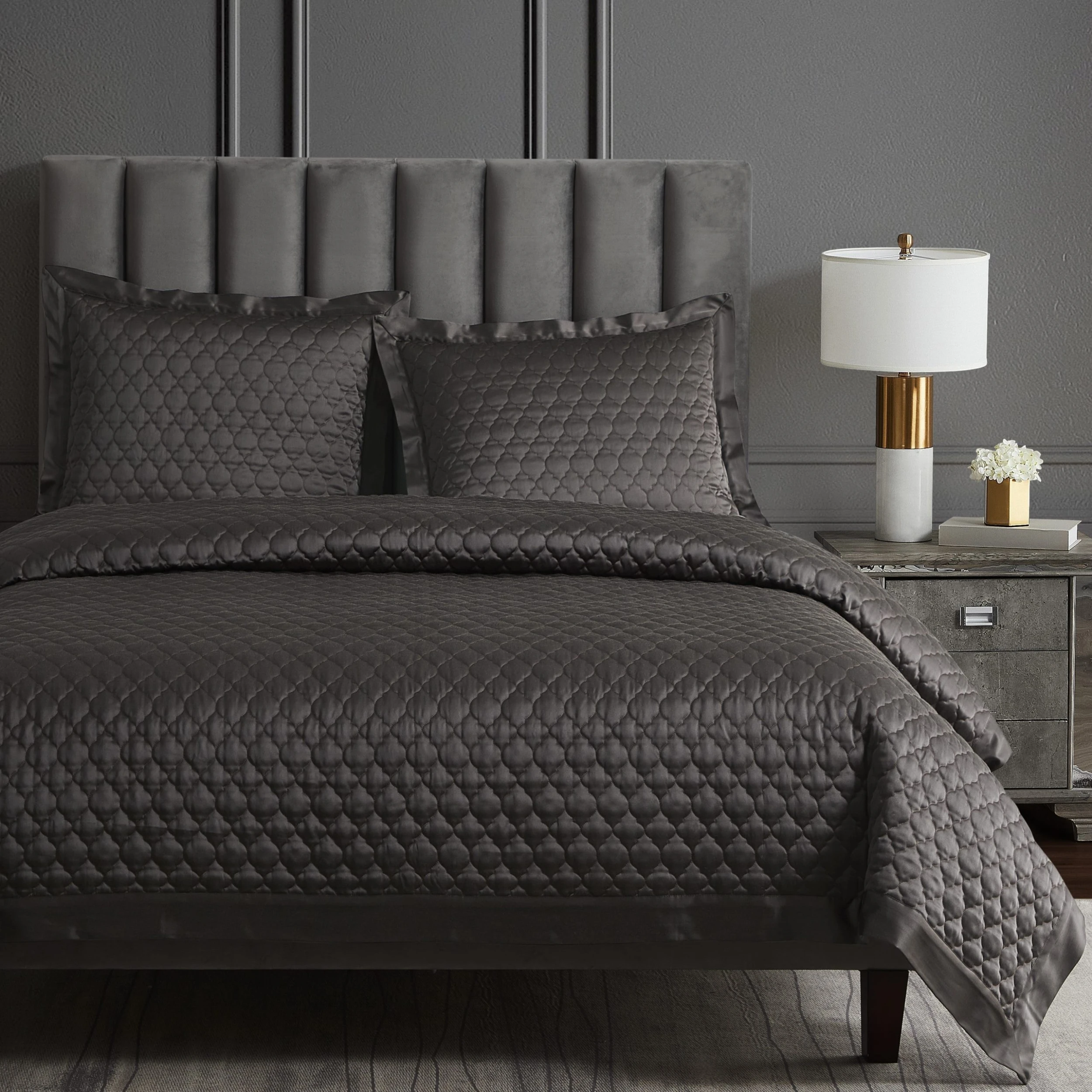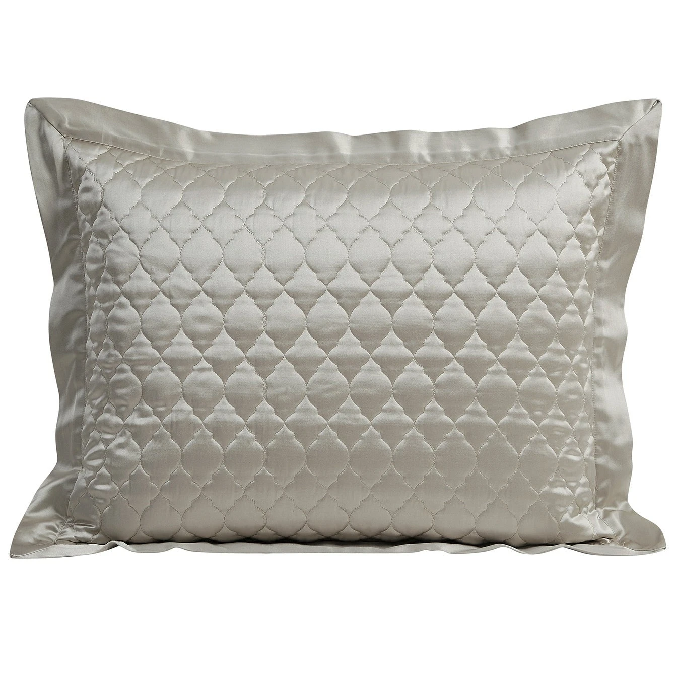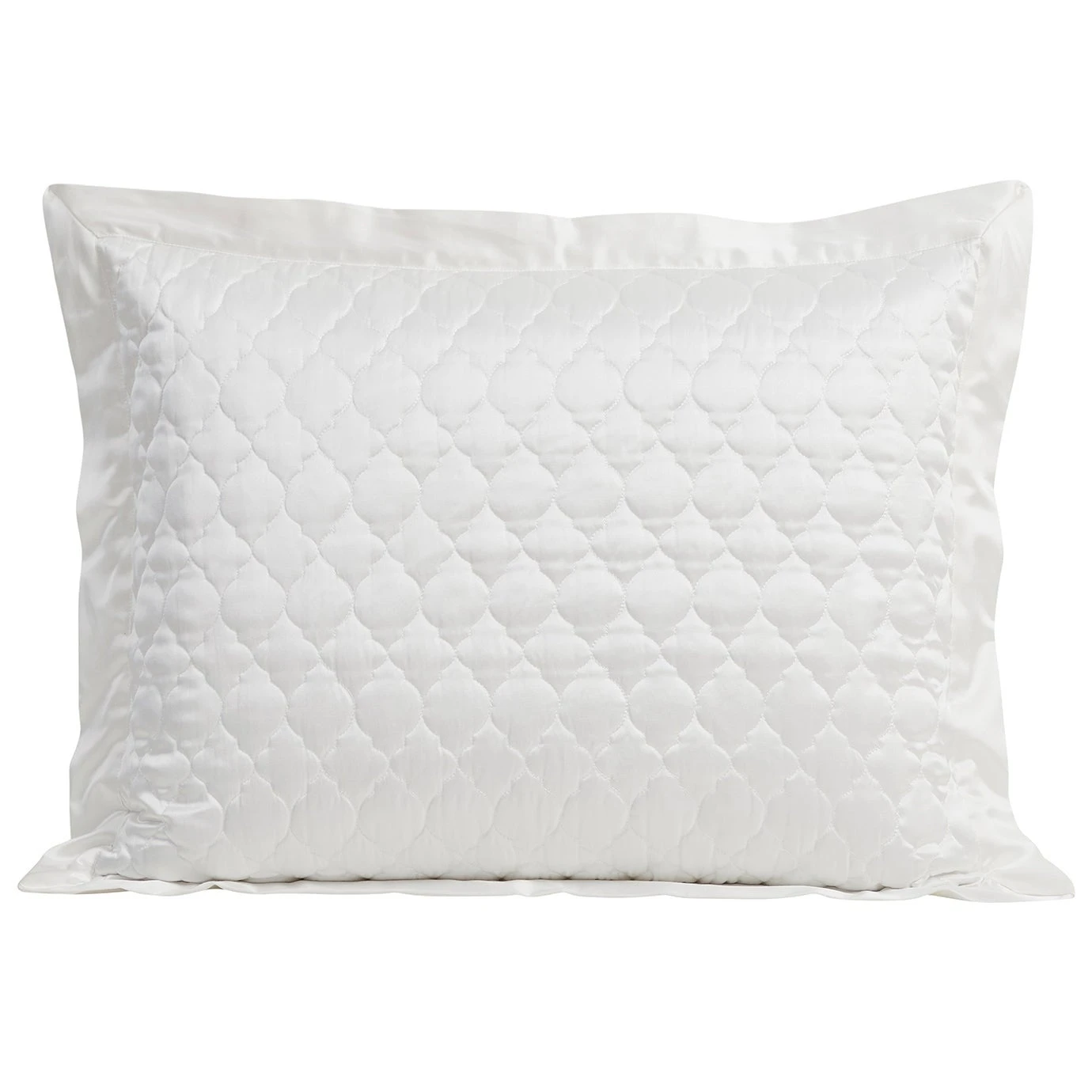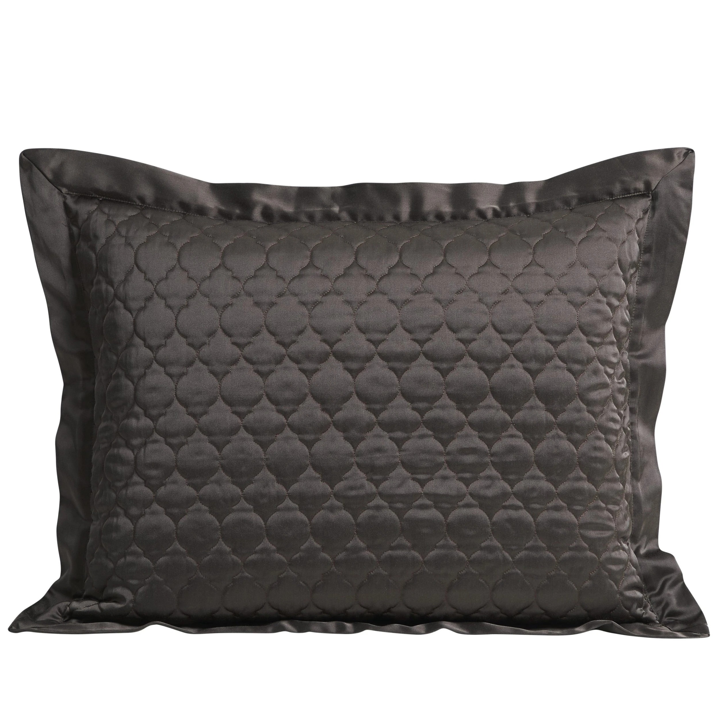 With exquisite satin textures and a lustrous allure, our High Shine Quilted Pillow Sham brings an elevated touch to any bedding ensemble. This pillow sham is adorned with delicate quatrefoil embroidery, which is enhanced by a gentle, shining facade that feels as soft as it’s luxurious. Large flanged edges with mitered corners complete the look for a refined finish. Coordinate with our High Shine duvet cover set and quilt to complete a sophisticated modern-contemporary or classic bedroom aesthetic.What’s Included2 Pillow ShamsDimensionsStandard – 21″W x 27″LKing – 21″W x 34″LMaterialsFace: 52% viscose, 48% polyester; Back: 100% polyester; Fill: 100% polyesterCareDry clean only.*Inserts available separately.