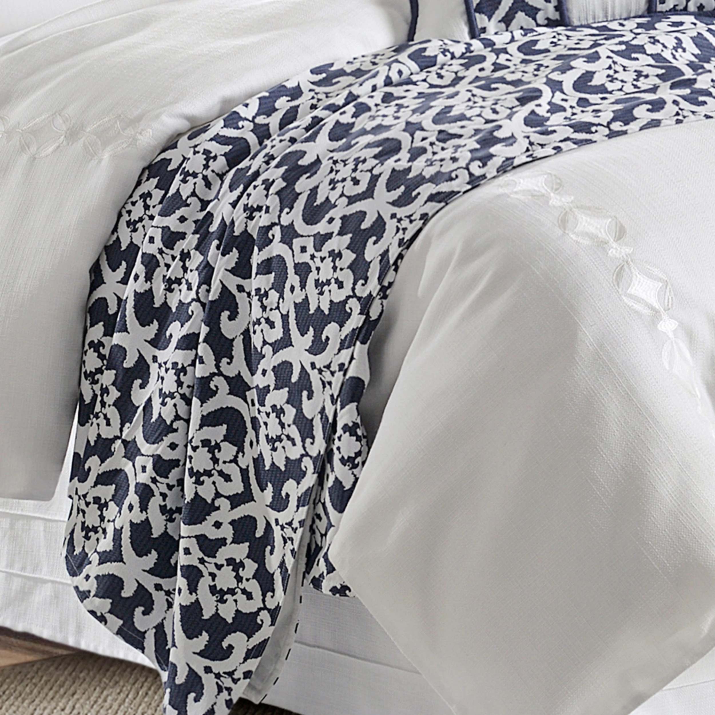 HiEnd Accents Kavali Navy & White Floral Jaquard Duvet Super King