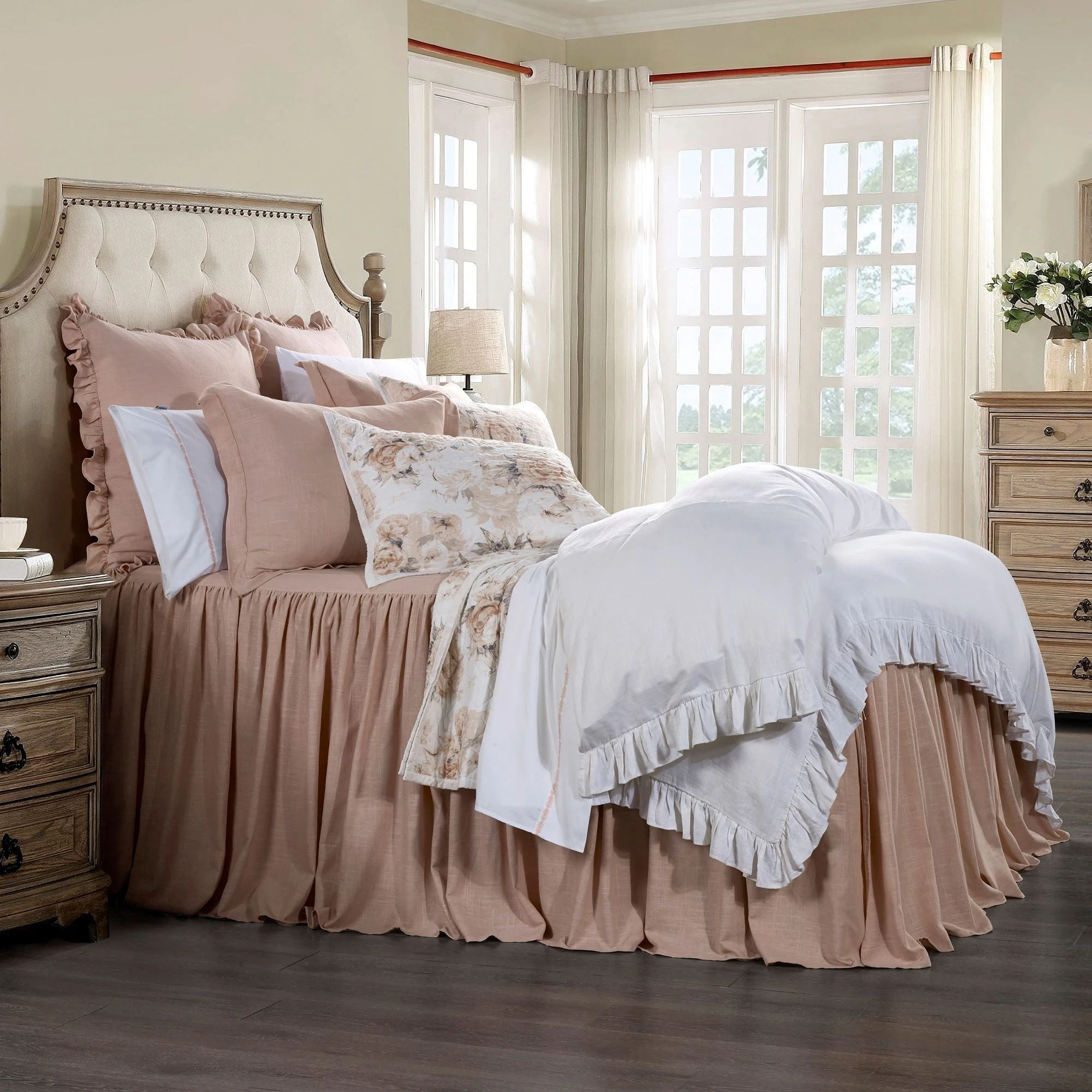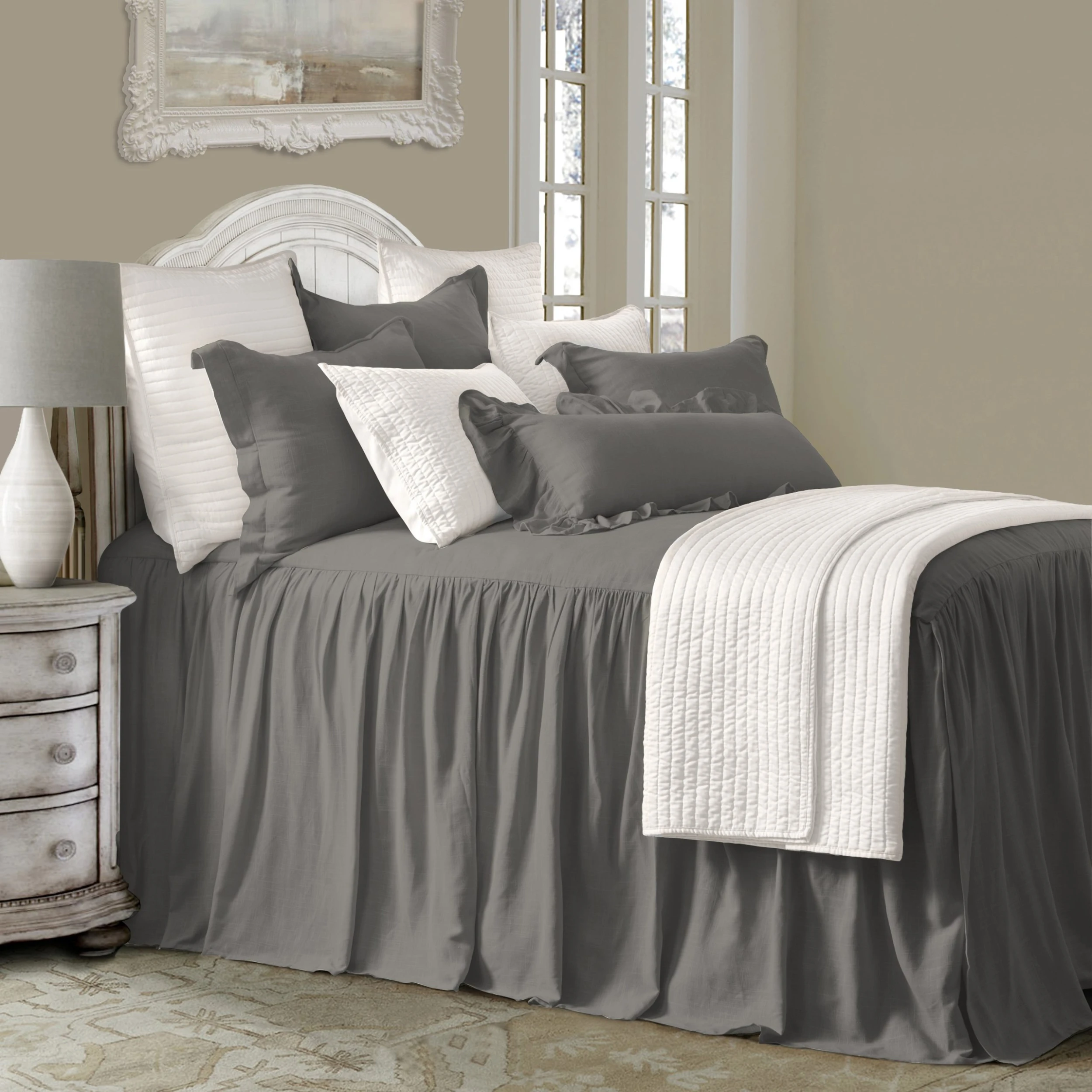 Introduce simple and easy elegance to your bedroom with this romantic bedspread set. In a versatile range of neutrals, our linen-blend echoes the visual and textural allure of linen, but with extra softness and easier care. Layer with neutral accessories for a soft, dreamy look, or with patterns and textures to make them pop. To complete your romantic chic and shabby or farmhouse look, coordinate this bedspread with our Lily or Hera bedding sets, pillows, and shams.
