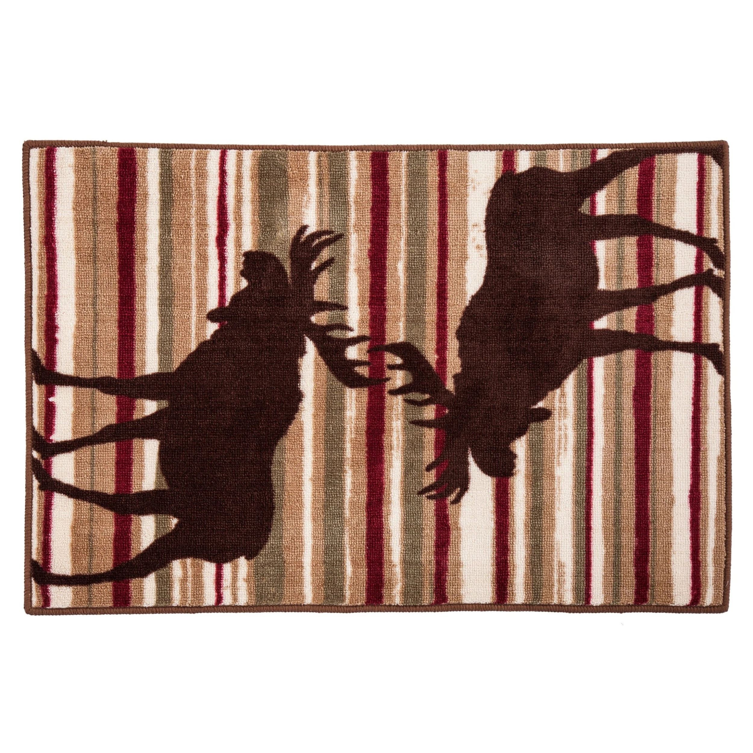 Bring the beauty of nature into your home with this fun Moose Stripe Rug. Beautiful hues of cranberry, sage, chocolate brown and tans create this visually appealing rug. Measures 24″x36″. Made from 100% premium acrylic with a latex backing. Machine wash for easy care. Imported.