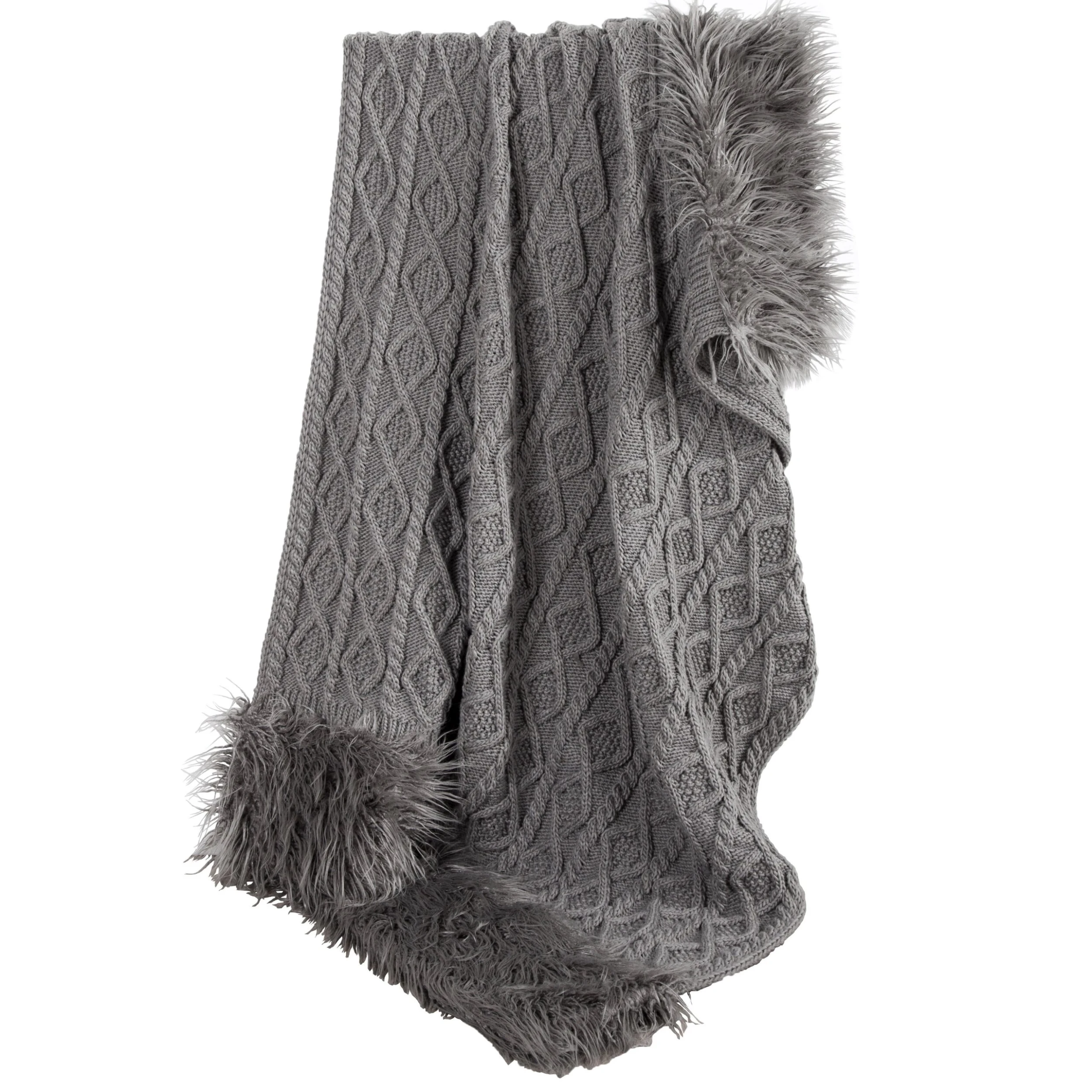 Wrap yourself in luxury with this gorgeous oversized Nordic Throw. This throw combines elements of a classic diamond pattern cable knit and a super soft faux Mongolian fur. Oversized construction makes this throw perfect to add to the foot of your bed or on the back of your sofa. Throw measures 50″x80″. Materials: 30% Wool/70% Acrylic. Hand wash cold, reshape and dry flat. Imported.