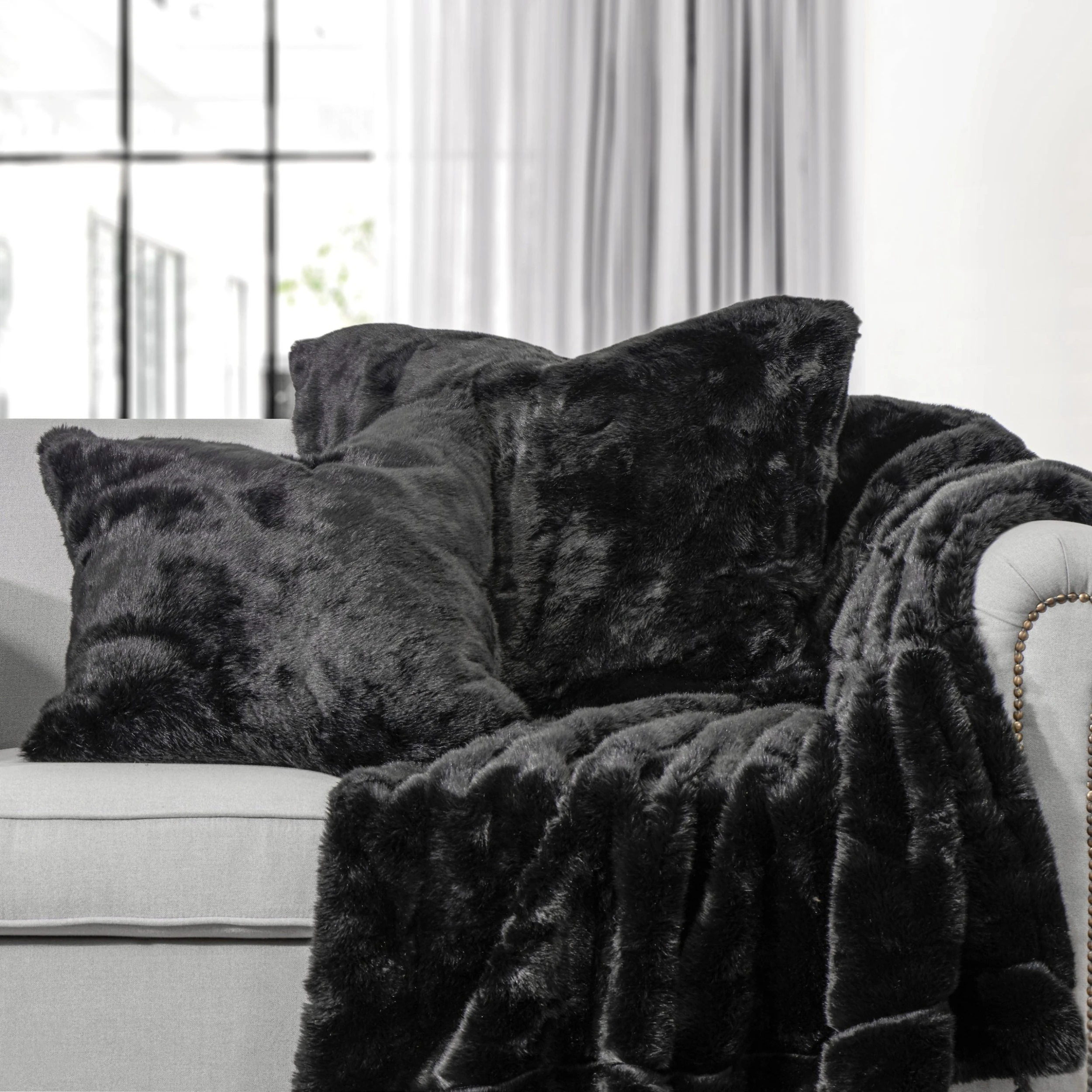 This oversized faux arctic bear throw will quickly become your favorite throw to cuddle-up with. Generously sized at 50″ x 80″ this throw is perfect to showcase at the base of a king or queen size bed. This throw will also look elegant on the back of a sofa. Coordinating accessories like the throw pillow and euro sham sold separately.