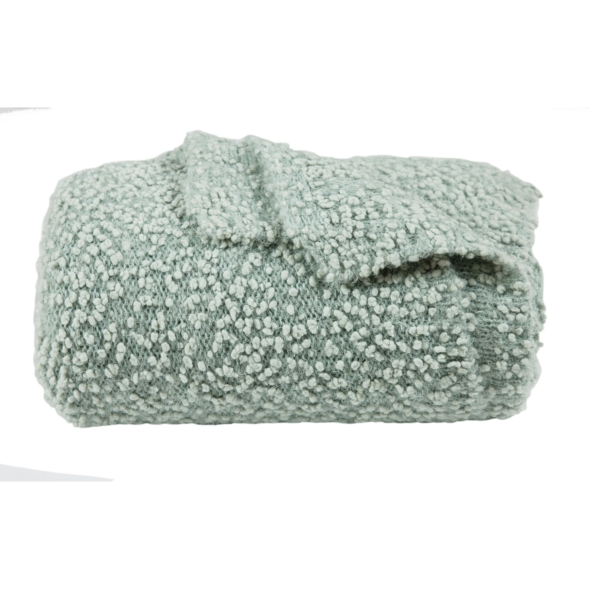 Wrap yourself in luxury with this seafoam Pebble Creek throw. Super soft construction will make this your favorite throw. Also available in gray, white and cream. Measures 50″ x 60″. Hand wash, reshape and dry flat. 50% nylon/ 50% acrylic. Imported.