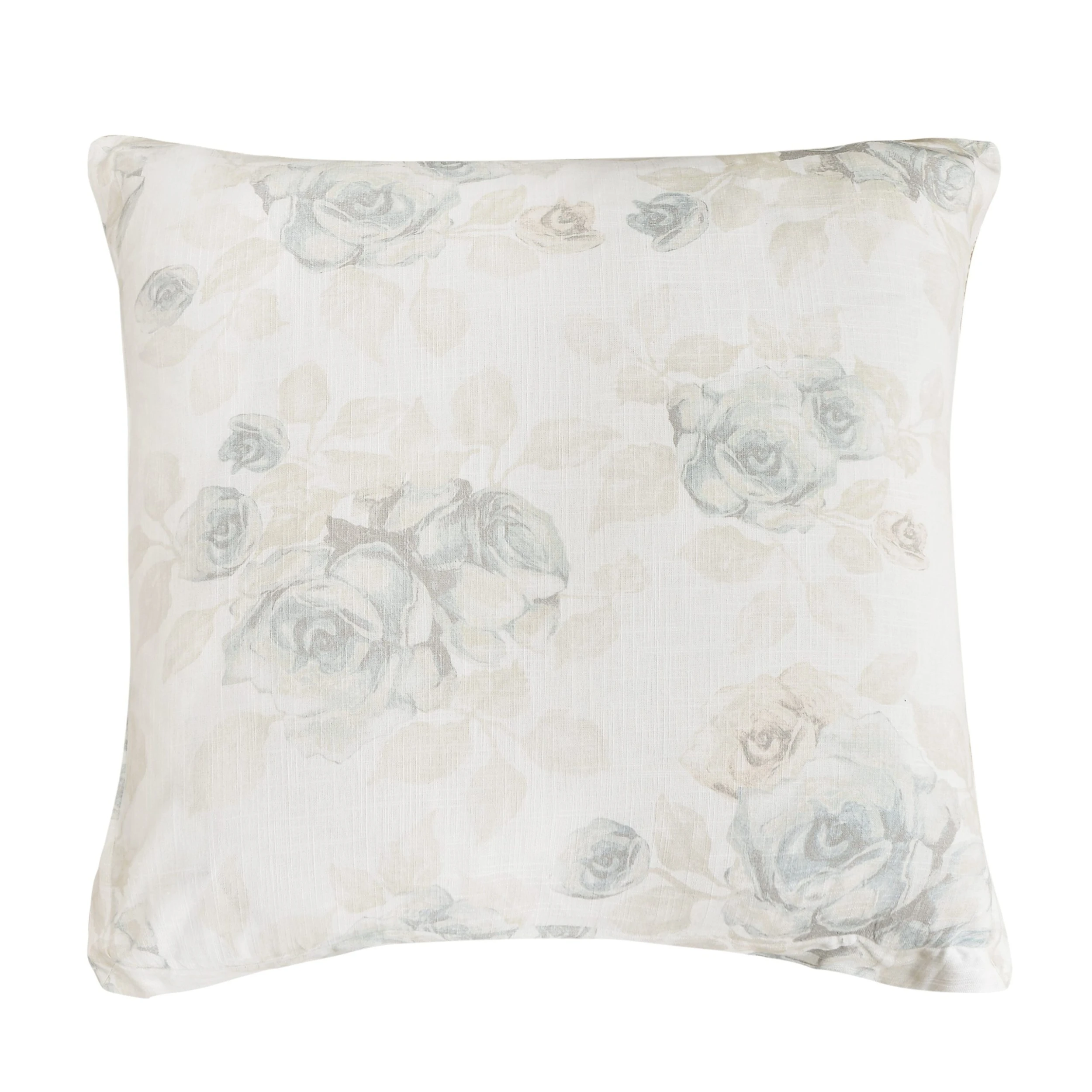 The lovely cabbage roses in soft shades of blue, blush, taupe and white create the perfect romantic scene. Rosaline Euro sham made of a viscose and linen blend provides a softness to the touch and a textural appeal, pairs beautifully with our Lily Duvet or alone as an accent.