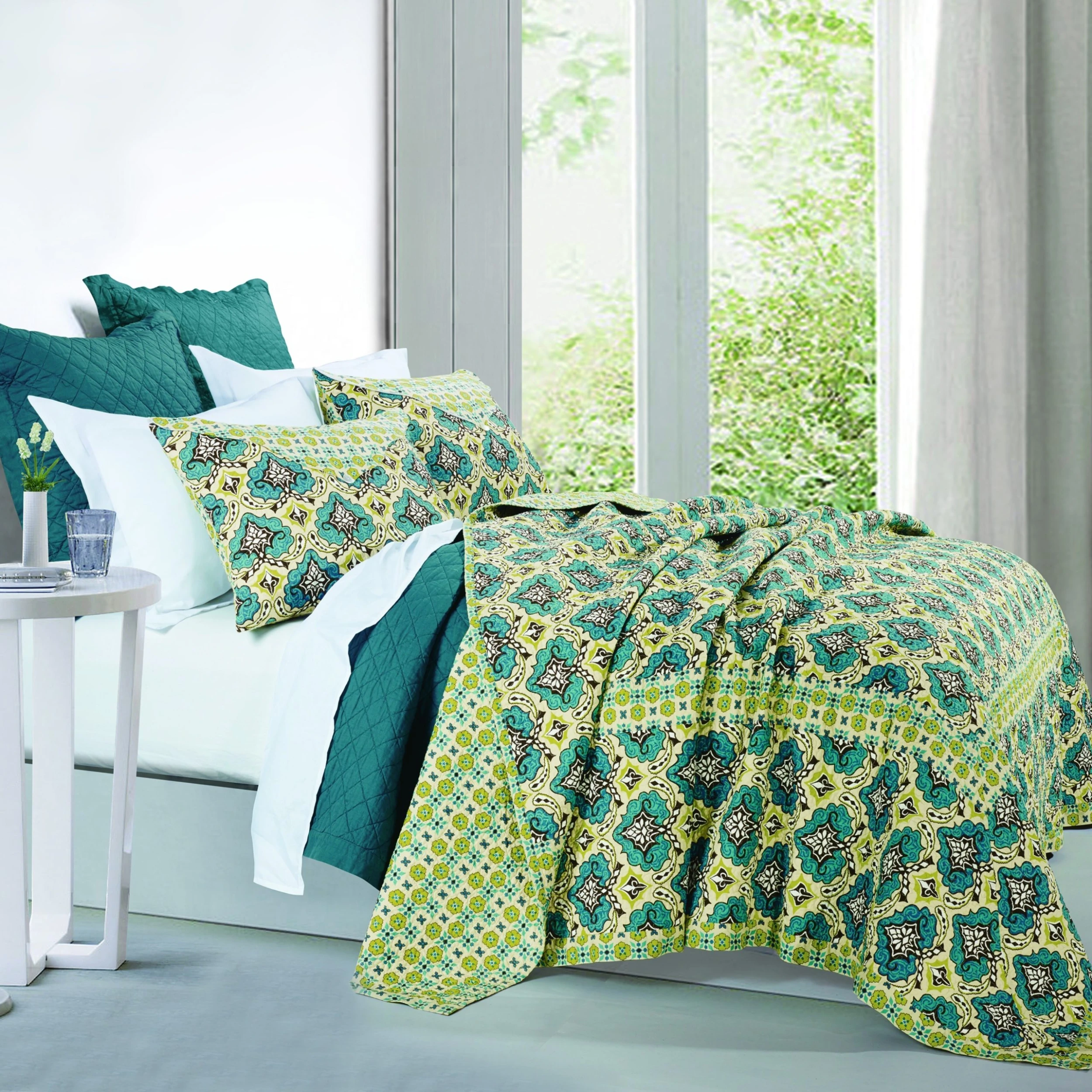 Brighten your bedroom with this multicolored quilt set from HiEnd Accents. The quilt set has a vintage medallion pattern that provides a country chic look, and it is made from soft cotton for added durability and comfort.