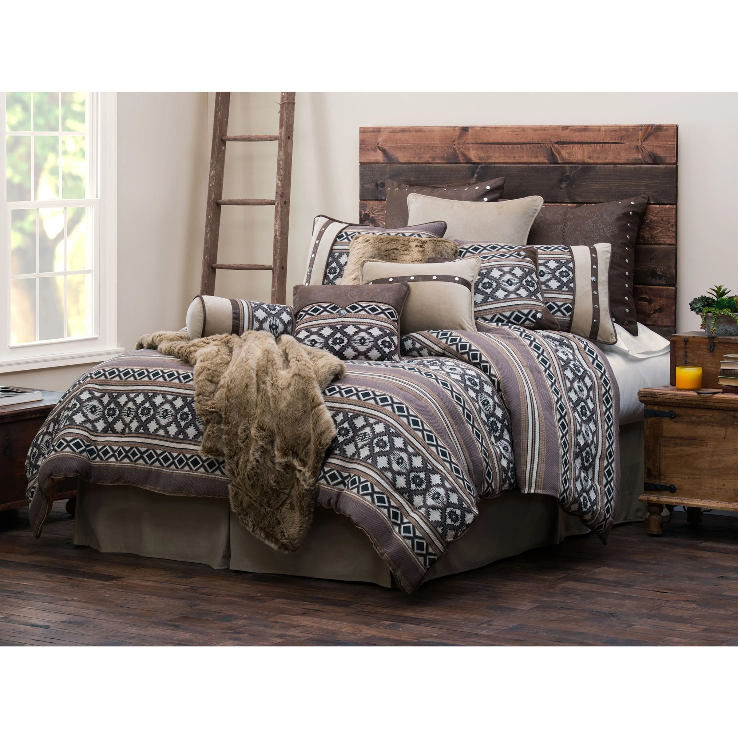 This Tucson 5 piece bedding set includes a luxurious comforter, two soft pillow shams, a comfy neck roll, and finally a bedskirt to accent your bedroom decor. The Lifestyle Rustic Collection by HiEnd Accents offers affordable luxury to those seeking a fashionable rustic look in their home. From quality window treatments, to decorative accessories, dinnerware, and bedding, the Lifestyle Rustic Collection provides the details that bring style and comfort into a home.